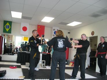 In martial arts one must then understand all ways therefore not limiting oneself. For instance, if one were to practice Right Hook Punch Do (the hypothetical style of a right hook punch) one would maximize his or her technique to a finite point and then be limited. How do you think this would fair against a violent Glock Do practitioner (the hypothetical style of using a Glock gun)? Within close quarters the first practitioner may have a very good chance of a favorable outcome against the second but at a medium range or longer the first practitioner would probably have 100% unfavorable results without knowing or having some persuasive psychology, distracting tactics, nonrhythmic mind interrupt techniques, smoke screens, chemical agents, Jujitsu, Chin-Na, Aikido, Tae Kwon Do, Judo and oh . . . of course . . . some Glock Do.